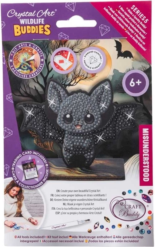 Αυτό το δημιουργικό σετ CRYSTAL ART με μοτίβο νυχτερίδας είναι ένας υπέροχος τρόπος να χαλαρώσετε ενώ φτιάχνετε μια όμορφη, λαμπερή διακόσμηση. Χάρη στο ευανάγνωστο πατρόν και την αυτοκόλλητη επιφάνεια, η διαδικασία τοποθέτησης των πετρών είναι διαισθητική και κατάλληλη για παιδιά και ενήλικες.