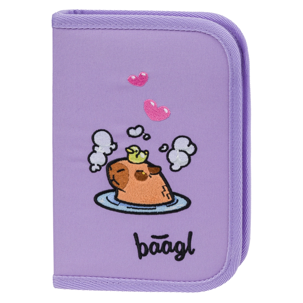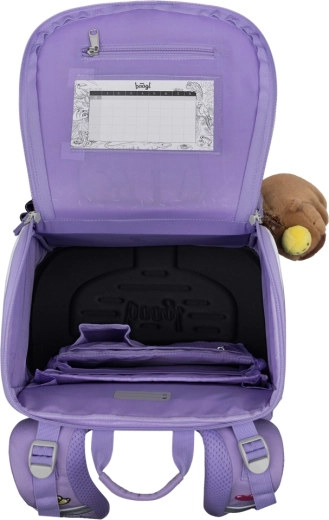 Πλήρης σχολικός εξοπλισμός για πρωτάκια σε απαλό μωβ σχεδιασμό Καπιμπάρα από τη μάρκα BAAGL. Το σετ περιλαμβάνει ελαφριά εργονομική σχολική τσάντα με σύστημα ERGO ADJUSTABLE, ευρύχωρη κασετίνα με φερμουάρ, πρακτικό σακουλάκι με τσέπη φερμουάρ, προστατευτική ποδιά και πορτοφολάκι λαιμού. Η έμφαση στην ασφάλεια (ανακλαστικά στοιχεία), την ανθεκτικότητα των υλικών και την έξυπνη οργάνωση κάνει αυτό το σετ ιδανική επιλογή για κάθε σχολική μέρα.