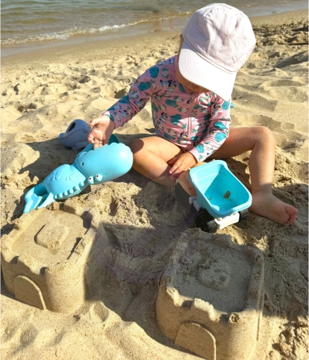 Το σετ ενισχύει την παιδική κινητικότητα, την συντονισμένη κίνηση ματιού–χεριού, τη φαντασία και τη χωρική σκέψη. Με το φορτηγάκι, τη δαγκάνα κροκόδειλου και τα κουπάτ τα παιδιά χτίζουν κάστρα, μεταγγίζουν άμμο και μεταφέρουν φορτία. Όλα τα τεμάχια είναι ελαφριά, με αγαπητά ζωόμορφα σχήματα και φιλικές καμπύλες για ασφαλές παιχνίδι.