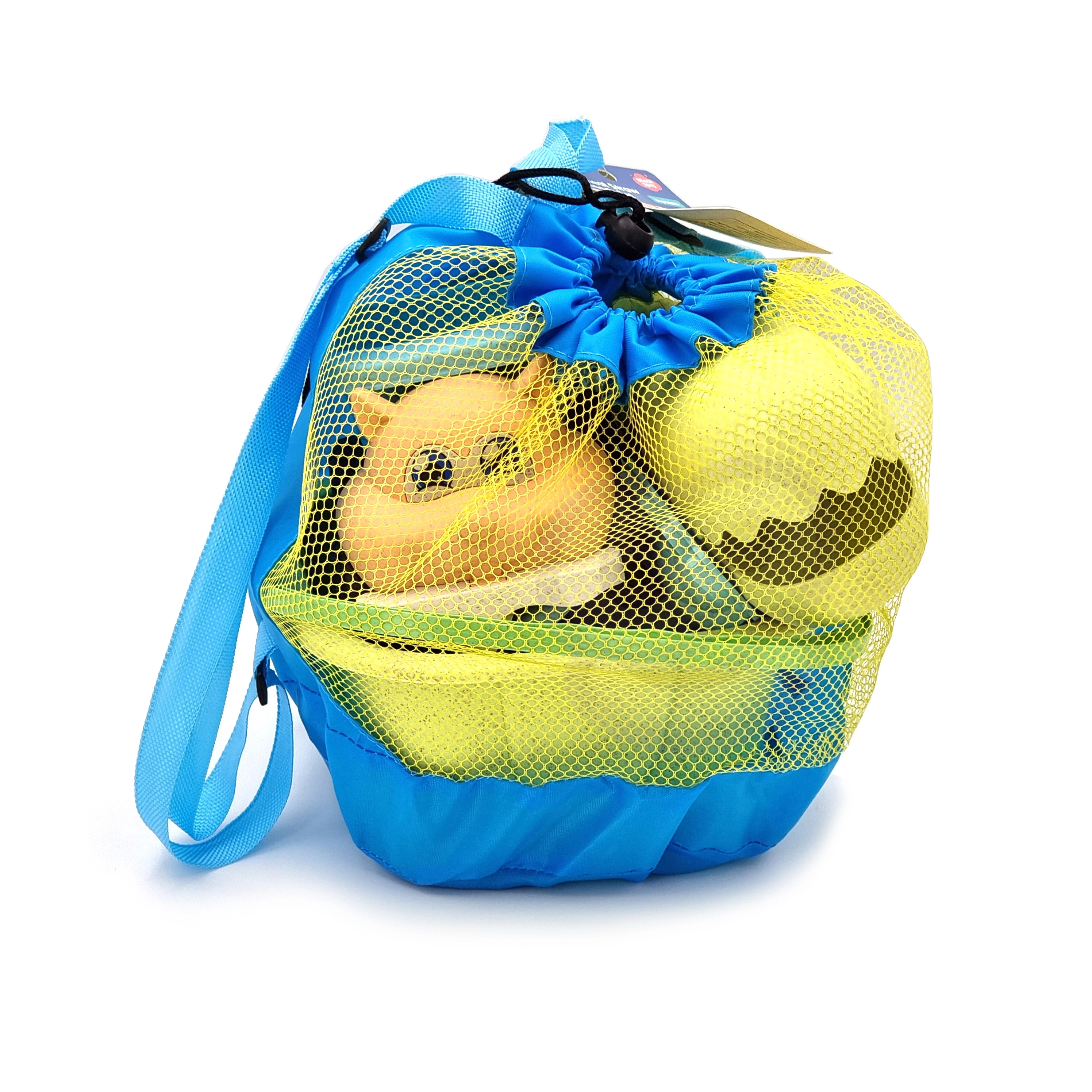 Ελαφρύ δικτυωτό πουγκί που φοριέται ως σακίδιο – εύκολη μεταφορά, γρήγορο στράγγισμα και στέγνωμα των παιχνιδιών, λιγότερη άμμος στην τσάντα μετά την παραλία.