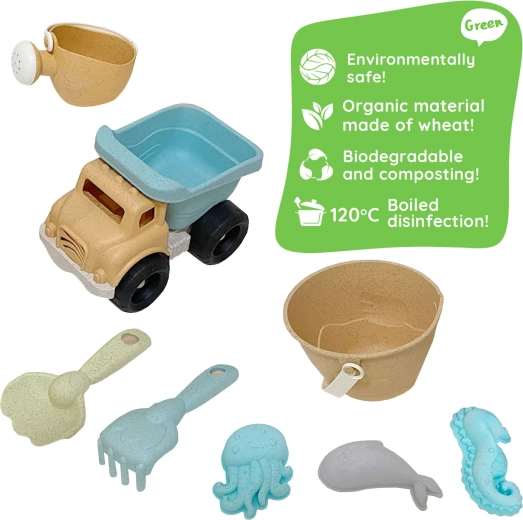 Το σετ άμμου WOOPIE GREEN προσφέρει στα παιδιά ώρες δημιουργικού παιχνιδιού και στους γονείς τη βεβαιότητα μίας φιλικής προς το περιβάλλον επιλογής. Το προϊόν είναι κατασκευασμένο από οργανικό, οικολογικό υλικό με βάση ίνες σίτου, το οποίο αποσυντίθεται φυσικά στο έδαφος και είναι κομποστοποιήσιμο. Οι παστέλ αποχρώσεις και οι εργονομικές φόρμες υποστηρίζουν ευχάριστο και ασφαλές παιχνίδι.