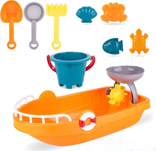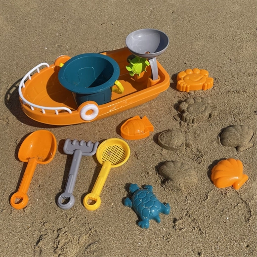 Η μεγάλη βάρκα λειτουργεί ως δοχείο εργασίας για άμμο και νερό αλλά και ως πρακτικό κουτί για μεταφορά και αποθήκευση όλων των αξεσουάρ.