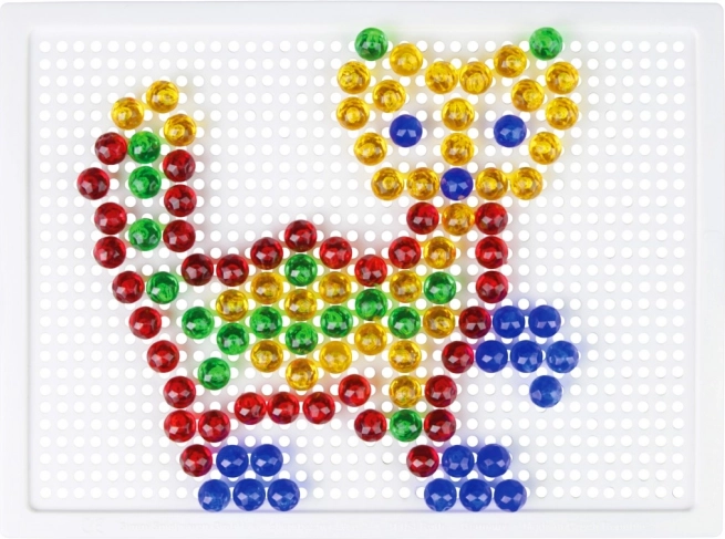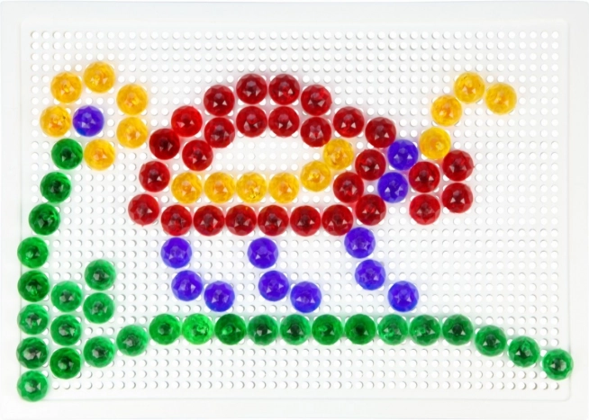 Αυτό το κρυστάλλινο μωσαϊκό είναι ιδανική επιλογή για τα πρώτα δημιουργικά βήματα. Χάρη στους διάφανους, χρωματιστούς πείρους, δημιουργούνται πάνω στη λευκή βάση έντονες και παιχνιδιάρικες εικόνες. Τα παιδιά εξασκούν την υπομονή, τον συντονισμό ματιού–χεριού και μαθαίνουν να αναγνωρίζουν χρώματα και σχήματα.