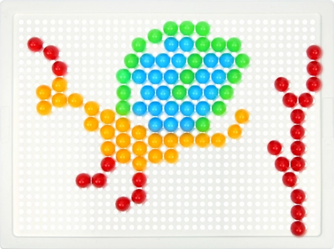 Στη συσκευασία θα βρείτε ένα στιβαρό πλαστικό πλέγμα διαστάσεων 21 × 16 cm και 140 πείρους διαμέτρου 10 mm – ιδανικούς για το παιδικό χεράκι. Το μωσαϊκό δεν περιλαμβάνει πρότυπα, ενισχύοντας έτσι φυσικά τη ελεύθερη δημιουργικότητα και τον αυτόνομο σχεδιασμό μοτίβων.