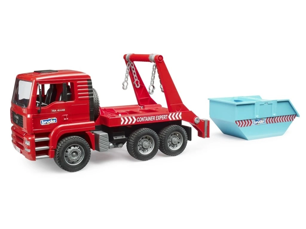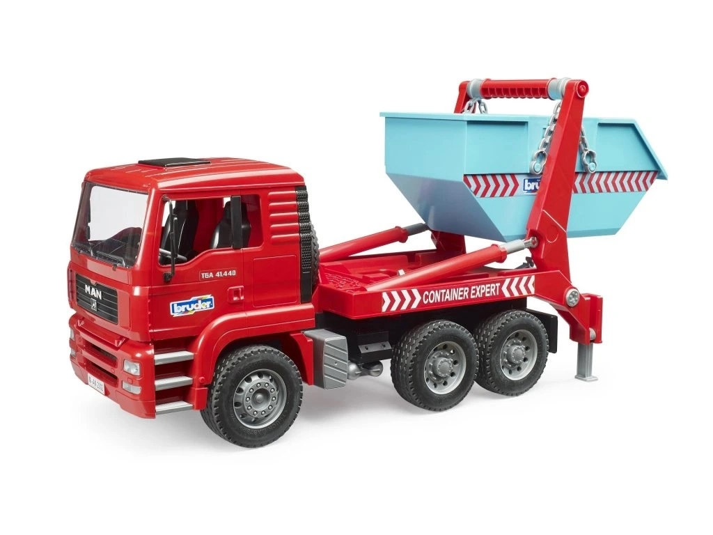 Αυτό το λεπτομερές μοντέλο MAN TGA φέρνει στον παιδικό κόσμο αυθεντικές λειτουργίες πραγματικών επαγγελματικών οχημάτων. Το κοντέινερ μπορεί να φορτωθεί και να εκφορτωθεί με μία κίνηση, οι αλυσίδες να απελευθερωθούν και το φορτίο να αποθετηθεί με ασφάλεια στο σημείο. Η ανακλινόμενη καμπίνα αποκαλύπτει το μπλοκ του κινητήρα και ενισχύει τον ρεαλισμό στο παιχνίδι.