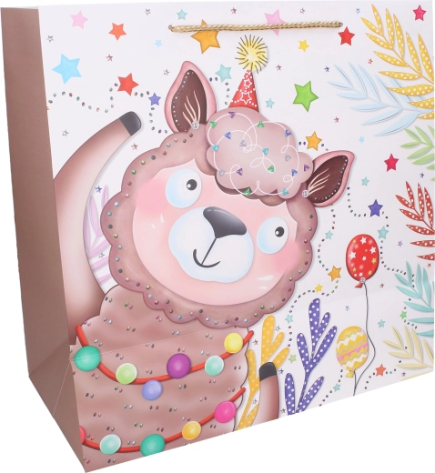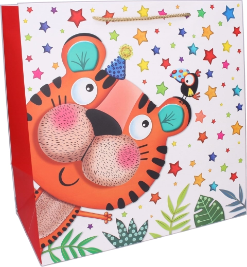 Στυλάτη και ανθεκτική τσάντα δώρου για παιδιά με χαρούμενα ζωόμορφα μοτίβα που μετατρέπει κάθε παράδοση δώρου σε μικρή γιορτή. Χάρη στο πραγματικά μεγάλο μέγεθος χωρά άνετα ογκώδη και ακανόνιστα αντικείμενα, ενώ το ανθεκτικό κορδόνι-λαβή εξασφαλίζει ασφαλές κράτημα.