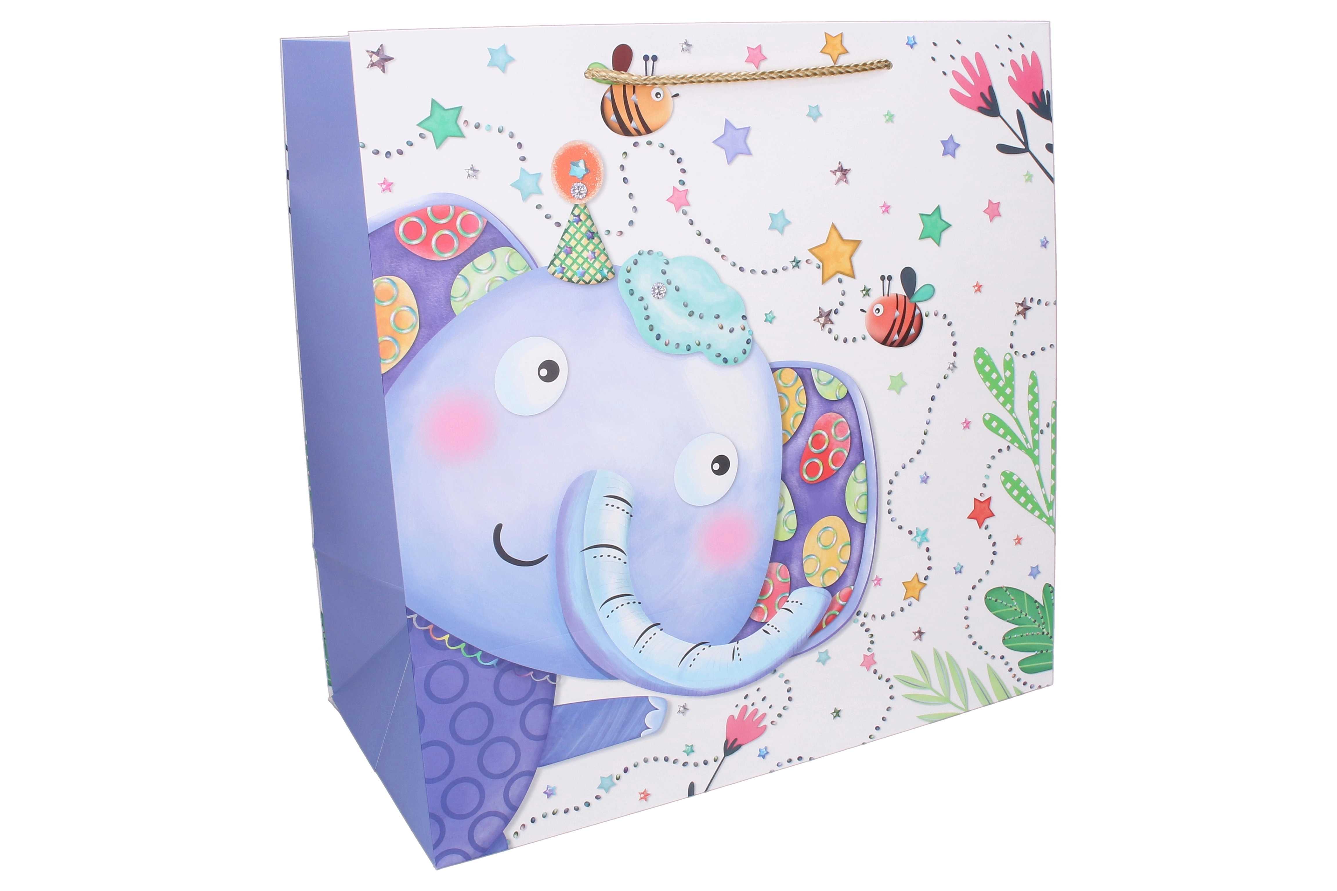 Η γυαλιστερή εκτύπωση με παιχνιδιάρικες εικονογραφήσεις θα ενθουσιάσει τους μικρούς εορτάζοντες και το ποιοτικό χαρτί με ενισχυμένα πλαϊνά διατηρεί το σχήμα ακόμη και υπό πλήρες φορτίο. Ιδανική για γενέθλια, γιορτές, παιδικά πάρτι και χριστουγεννιάτικα δώρα.