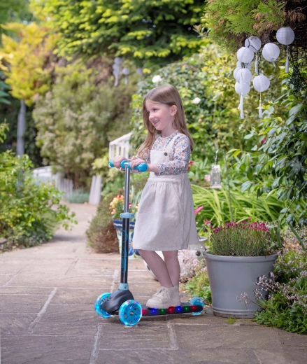 Το παιδικό τρίτροχο πατίνι EVO Eclipse προσφέρει σταθερή και διασκεδαστική οδήγηση για μικρούς αναβάτες από 3 ετών. Χάρη στους δύο μπροστινούς τροχούς, το ρυθμιζόμενο ύψος τιμονιού και τους φωτιζόμενους τροχούς και βάση, τα παιδιά απολαμβάνουν με ασφάλεια κάθε βόλτα ενώ αναπτύσσουν ισορροπία και συντονιστικές δεξιότητες.