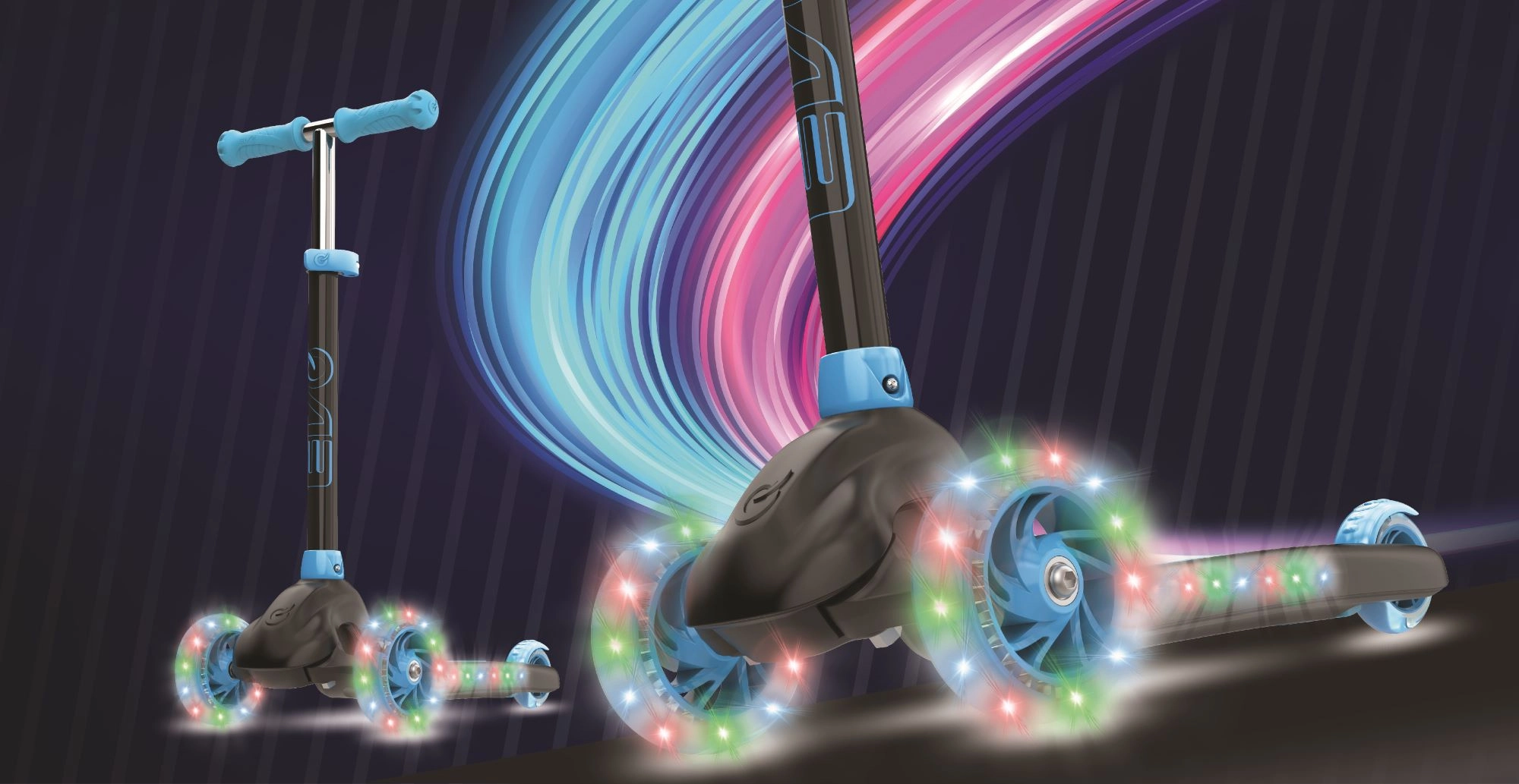 Οι φωτιζόμενοι τροχοί και το φωτιζόμενο χείλος της βάσης προσθέτουν εντυπωσιακό εφέ και βελτιώνουν την ορατότητα στο λυκόφως. Απαιτούνται 3× AAA μπαταρίες (δεν περιλαμβάνονται).
