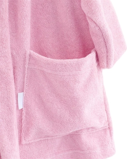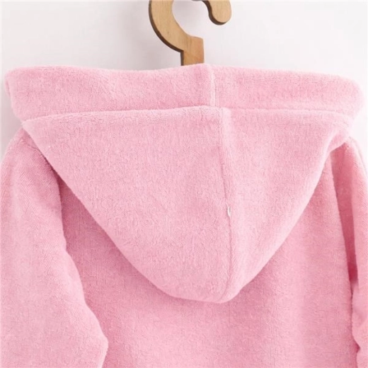 Απαλό και ζεστό παιδικό μπουρνούζι φροτέ NEW BABY με κουκούλα σε ροζ χρώμα, ιδανικό μετά το μπάνιο, για την πισίνα και τη θάλασσα. 100% βαμβάκι με βάρος 240 g/m², φιλικό προς την ευαίσθητη παιδική επιδερμίδα, η κουκούλα προστατεύει το βρεγμένο κεφάλι από το κρύο και η ραμμένη ζώνη δεν χάνεται και δεν ενοχλεί. Οι πρακτικές βαθύτερες τσέπες χωρούν τα μικροαντικείμενα του παιδιού. Η πιστοποίηση OEKO-TEX STANDARD 100 εγγυάται την ασφάλεια για την υγεία.