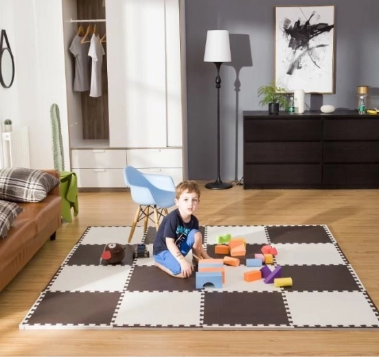 Η ουδέτερη κρεμ απόχρωση ταιριάζει σε κάθε εσωτερικό χώρο. Τα κομμάτια μπορούν να συνδέονται ελεύθερα στο ίδιο μοντέλο για να σχηματίσουν μεγαλύτερη επιφάνεια ή να δημιουργούν 3D σχήματα για την ανάπτυξη της φαντασίας. Η αντιολισθητική υφή υποστηρίζει ασφαλές μπουσούλημα και τα πρώτα βήματα.