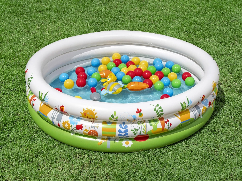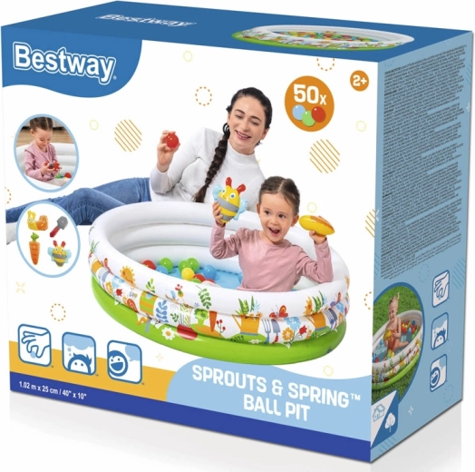 Ανακαλύψτε τον παιχνιδιάρικο κόσμο της άνοιξης με μοτίβα λουλουδιών, μελισσών και κήπου. Το Bestway Sprouts & Spring προσφέρει μαλακά, φουσκωτά τοιχώματα για ασφαλές παιχνίδι, που αναπτύσσει τη λεπτή κινητικότητα, τον συντονισμό και την αισθητηριακή αντίληψη χάρη στα χρώματα, τα σχήματα και τις υφές. Τις ζεστές μέρες γεμίζει εύκολα με νερό και μετατρέπεται σε δροσερή λιμνούλα.