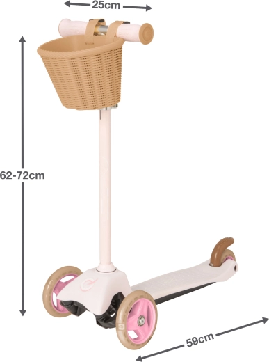 Το πρακτικό αποσπώμενο καλαθάκι στο τιμόνι επιτρέπει να πάρετε αγαπημένα μικροαντικείμενα παντού μαζί. Τα ρυθμιζόμενα καθ’ ύψος τιμόνια 62–72 cm και η ελαφριά κατασκευή διευκολύνουν τον έλεγχο και τη μεταφορά. Χάρη στο ελκυστικό ροζ χρώμα, τα παιδιά το λατρεύουν, ενώ οι γονείς εκτιμούν τις μελετημένες λεπτομέρειες ασφαλείας.