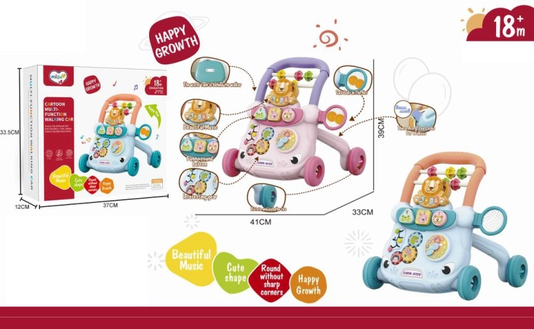 Η ροζ σπρωχτή περπατούρα σε σχήμα λιονταριού είναι ένας εξαιρετικός βοηθός για τα παιδιά που μαθαίνουν να περπατούν. Η ελαφριά και σταθερή κατασκευή από ασφαλές πλαστικό χωρίς αιχμηρές άκρες ενισχύει την αυτοπεποίθηση στην κίνηση, ενώ τα ενσωματωμένα ηχητικά εφέ διεγείρουν τις αισθήσεις και παρακινούν σε περισσότερα βηματάκια.