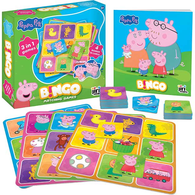 Απολαύστε οικογενειακή διασκέδαση με τους αγαπημένους ήρωες από την ΠΕΠΠΑ ΤΟ ΓΟΥΡΟΥΝΑΚΙ. Αυτή η παιδική εκδοχή του μπίνγκο έχει σχεδιαστεί ώστε να είναι εύκολα κατανοητή, γρήγορη και γεμάτη χαρά ανακάλυψης. Χάρη στους τρεις τρόπους παιχνιδιού, τα παιδιά δεν βαριούνται και μπορούν να εξασκηθούν στη συγκέντρωση, στην παρατηρητικότητα και στη στρατηγική του παιχνιδιού.