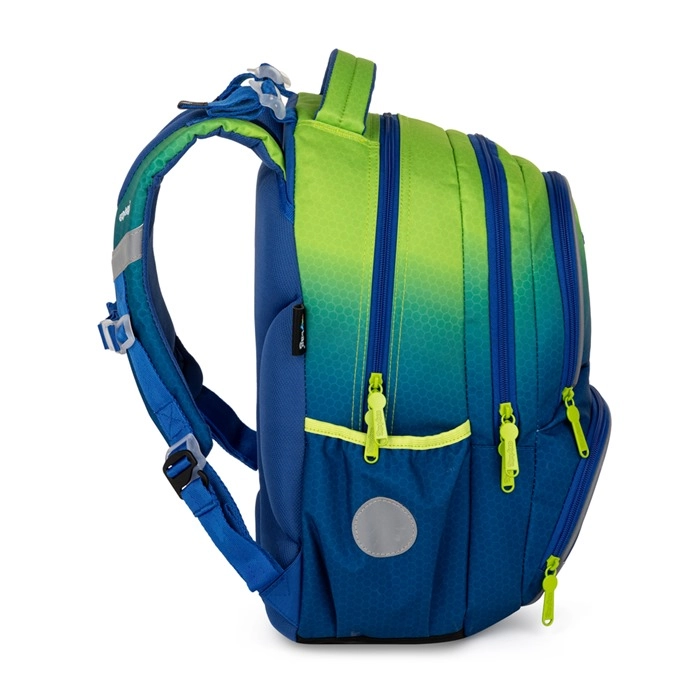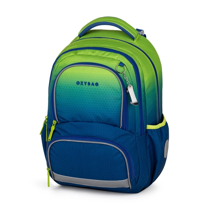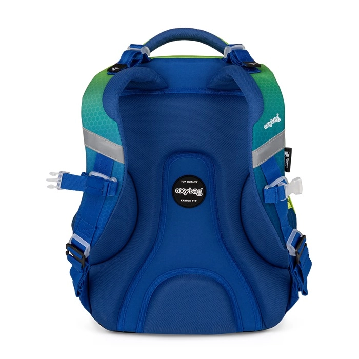 Πρακτικό σχολικό σετ για μαθητές της 2ης–4ης τάξης Δημοτικού, που περιλαμβάνει εργονομικό σακίδιο OXY NEXT, ευρύχωρη κασετίνα και πουγκί για τη γυμναστική. Το σακίδιο διαθέτει ανατομικά διαμορφωμένη πλάτη, επενδεδυμένους ιμάντες ώμου με στήθινη ζώνη, ανακλαστικά στοιχεία και πολλές τσέπες για τέλεια οργάνωση. Ανθεκτικός αδιάβροχος πάτος, ελαφριά κατασκευή και μοντέρνος ombré σχεδιασμός σε μπλε‑πράσινους τόνους εξασφαλίζουν άνεση και ασφάλεια κάθε σχολική μέρα.