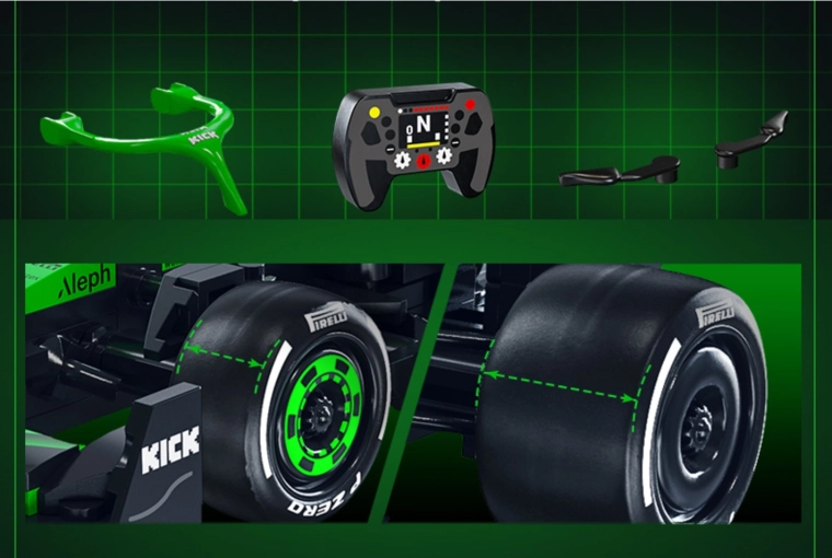 Τέσσερις ελεύθερα περιστρεφόμενοι τροχοί επιτρέπουν στο μοντέλο να κινείται σε επίπεδη επιφάνεια – ιδανικό για μικρούς αγώνες στο σπίτι.