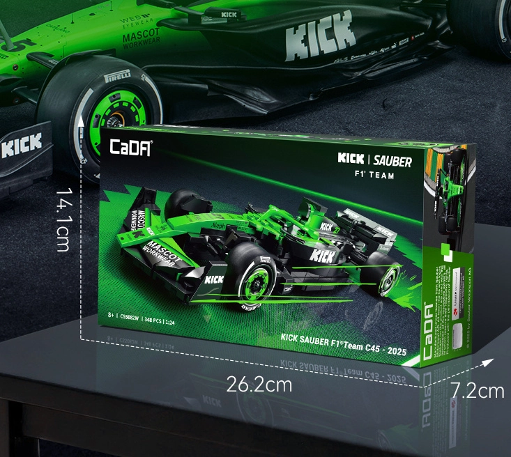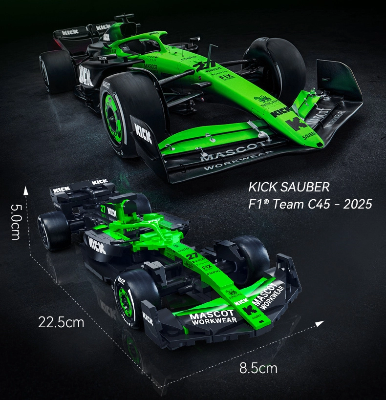 Απολαύστε ακριβή συναρμολόγηση και αγωνιστική ατμόσφαιρα με το μοντέλο KICK SAUBER F1 C45. Κομψός μαύρο‑πράσινος χρωματισμός, αεροδυναμικά φτερά και αυθεντικά γραφικά δημιουργούν ένα εντυπωσιακό αντίγραφο σύγχρονης φόρμουλας. Χάρη στους λειτουργικούς τροχούς το μοντέλο κινείται εύκολα σε επίπεδη επιφάνεια, ιδανικό τόσο για παιχνίδι όσο και για βιτρίνα.