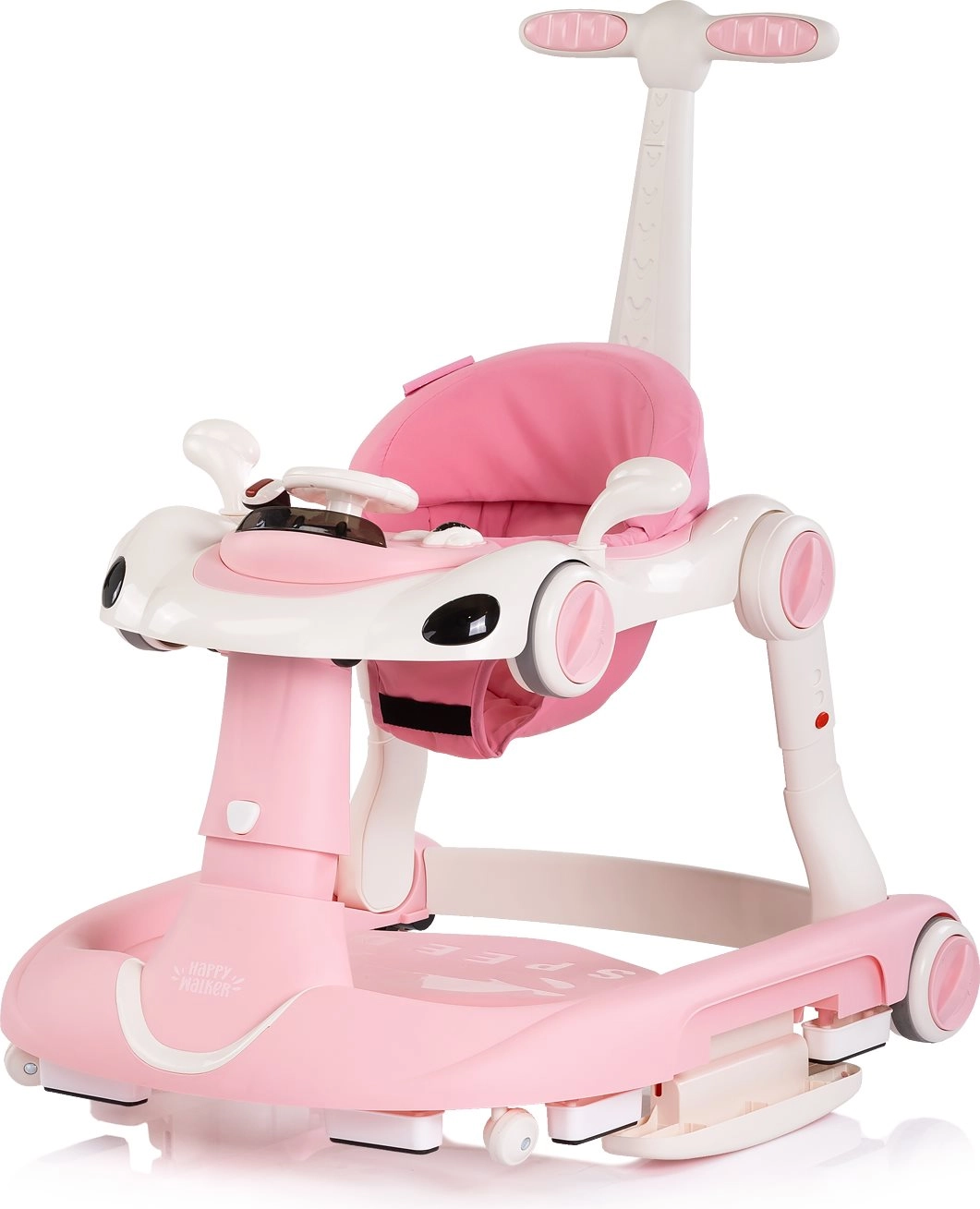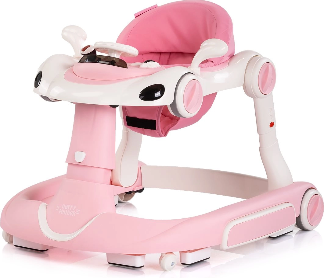 Η πολυλειτουργική περπατούρα 5-σε-1 CHIPOLINO Happy Walker σε ροζ χρώμα υποστηρίζει τα πρώτα βήματα και την παιχνιδιάρικη εξερεύνηση του κόσμου. Προσφέρει σταθερή κατασκευή, διαδραστικό μουσικό πάνελ με φώτα και ήχους, ρυθμιζόμενο ύψος και λαβή γονέα για ασφαλή καθοδήγηση. Χάρη στη λειτουργία κούνιας και αναπήδησης, τις αντιολισθητικές επιφάνειες, τα φρένα και τη ασφάλιση τροχών είναι ιδανική για καθημερινή χρήση και την ανάπτυξη ισορροπίας, συντονισμού και κινητικών δεξιοτήτων.