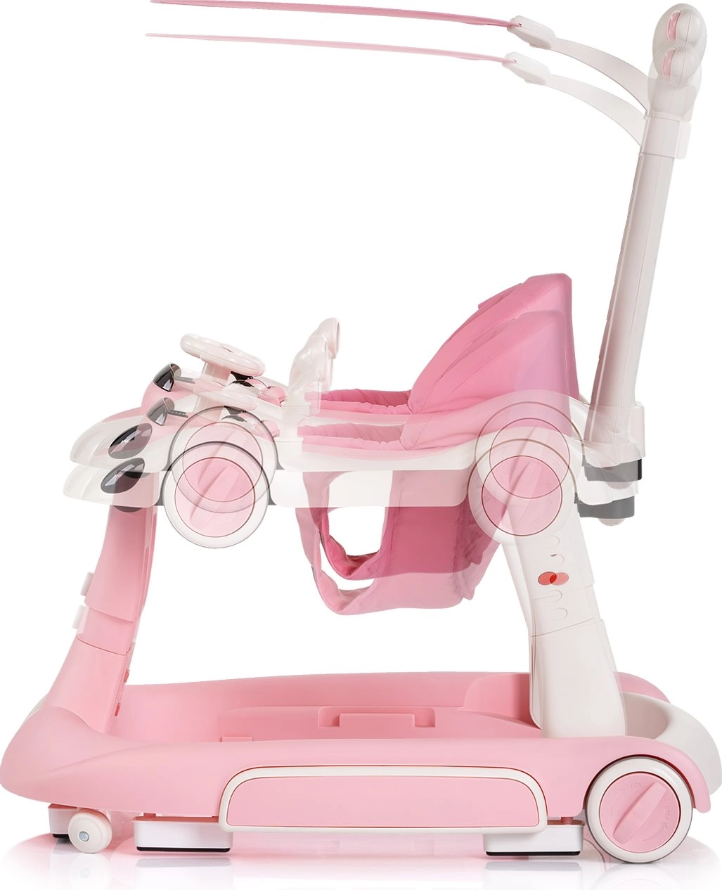 Περπατούρα, κουνιστή λειτουργία, λειτουργία αναπήδησης, κέντρο παιχνιδιού και ποδαράτο/σπρωξιματάκι – μία λύση για διαφορετικά στάδια ανάπτυξης και καθημερινή διασκέδαση.