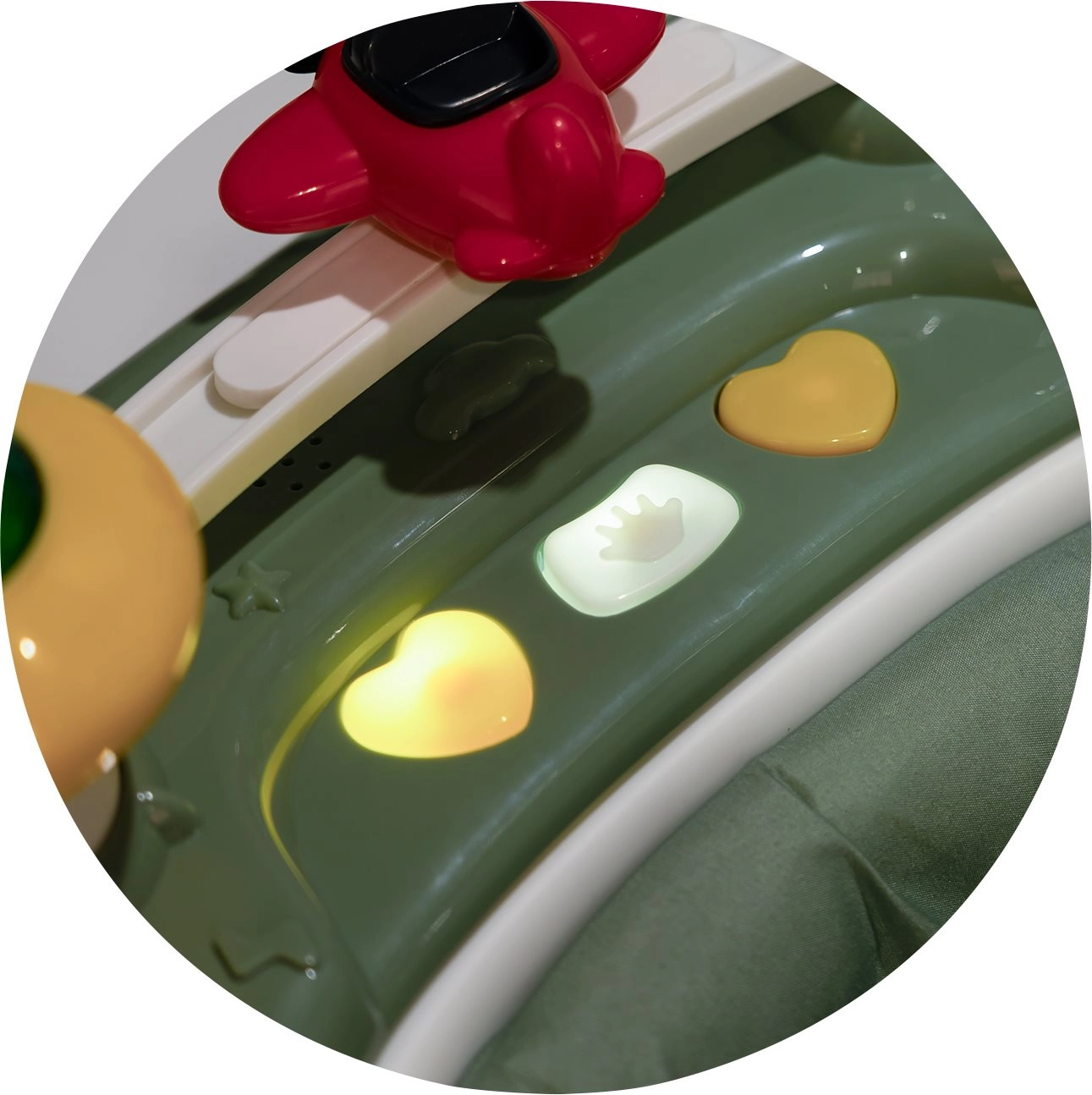 Πολύχρωμα κουμπιά, φωτεινά εφέ και κινούμενα παιχνίδια αναπτύσσουν τις αισθήσεις και τη λεπτή κινητικότητα, κρατώντας το παιδί απασχολημένο όλη την ημέρα.