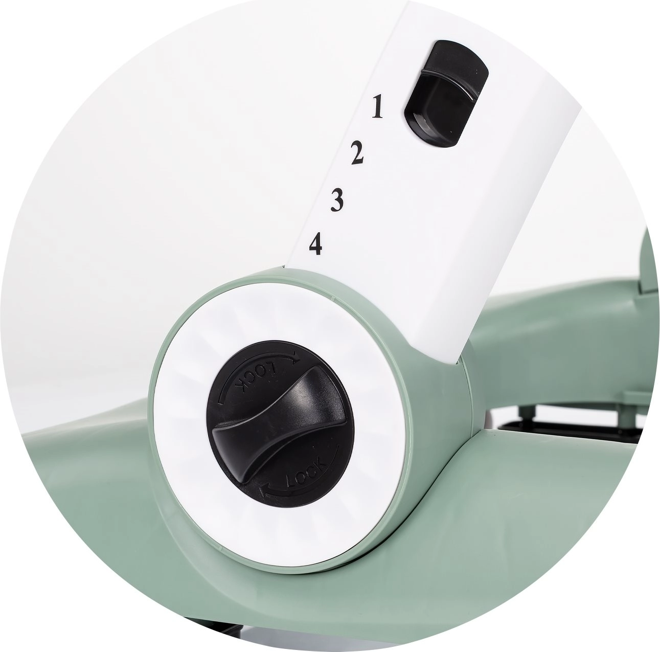 Αντιολισθητικά πέλματα, στάσεις ασφαλείας, κλειδωμένοι τροχοί και ρύθμιση ταχύτητας. Το ύψος προσαρμόζεται εύκολα ανάλογα με την ανάπτυξη του παιδιού.