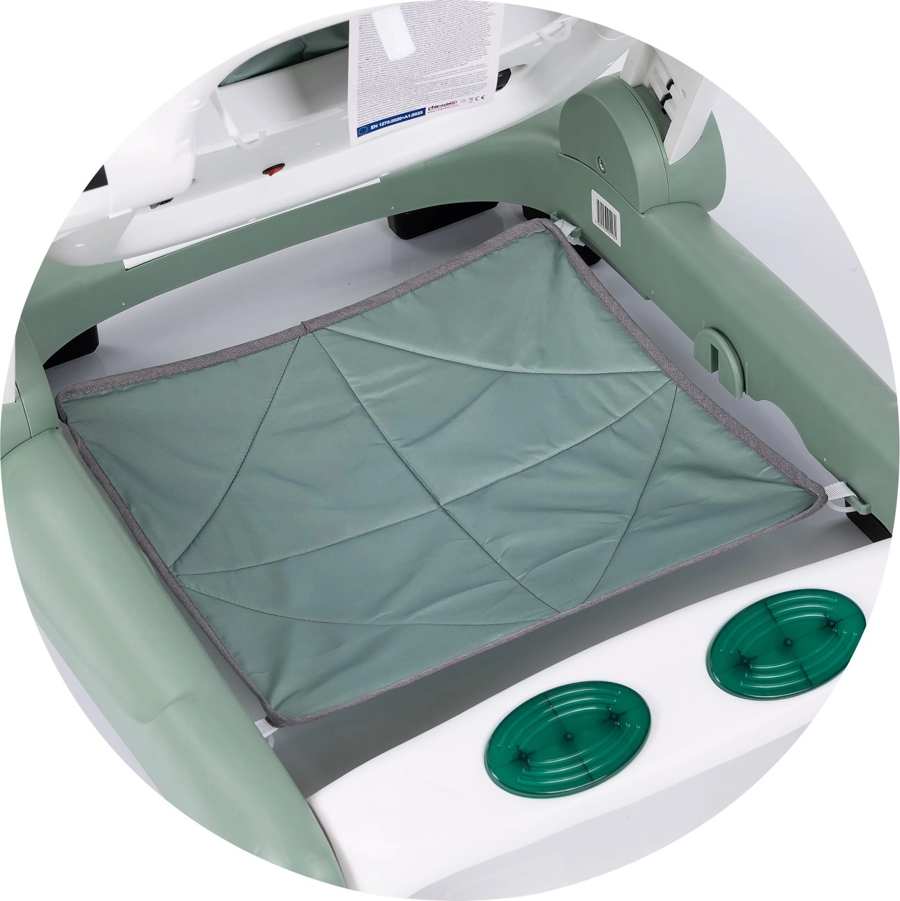 - Αντιολισθητικά πέλματα, στάσεις ασφαλείας, κλειδωμένοι και ρυθμιζόμενοι τροχοί, σταθερή βάση
