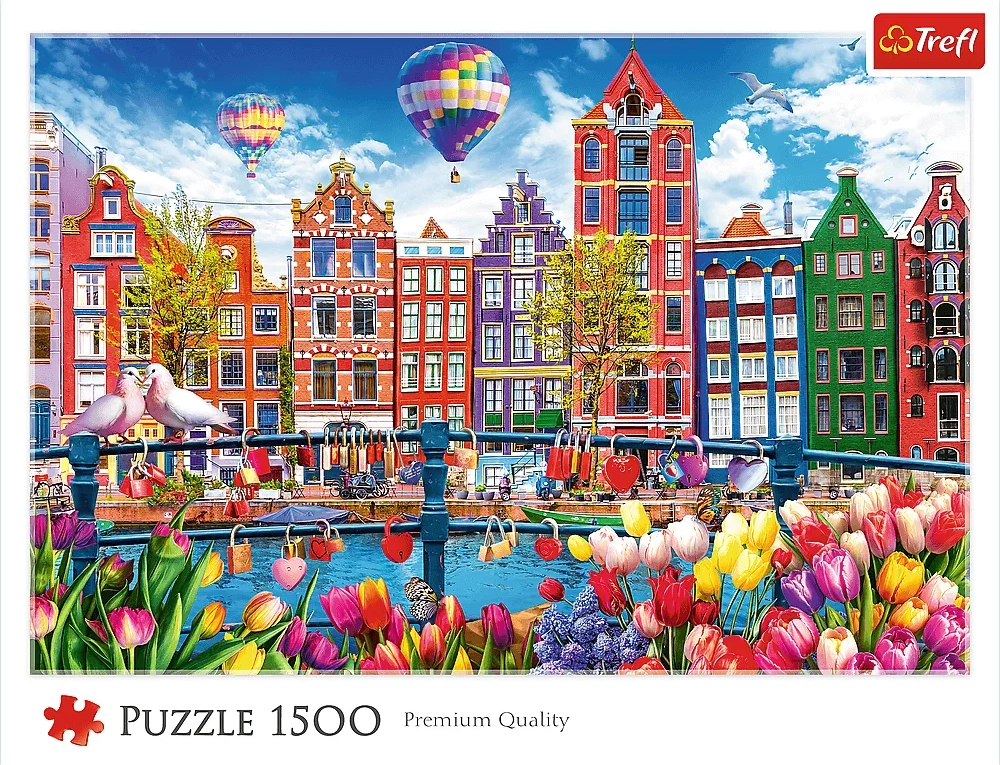 Ανακαλύψτε τη γοητεία της ολλανδικής μητρόπολης συναρμολογώντας το ποιοτικό παζλ TREFL. Το μοτίβο «Πολύχρωμο Άμστερνταμ» ξεχωρίζει με έντονα χρώματα, λεπτές λεπτομέρειες και ευχάριστη ατμόσφαιρα πόλης, που μετά την ολοκλήρωση αναδεικνύεται ως διακόσμηση στον τοίχο. Με 1500 κομμάτια προσφέρει διασκέδαση για πολλές ώρες και εξασκεί άριστα τη συγκέντρωση.