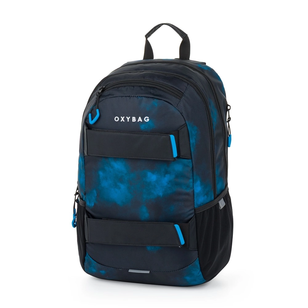 Το πρακτικό σχολικό και ψυχαγωγικό σετ OXYBAG συνδυάζει ένα ευρύχωρο μαθητικό σακίδιο 24 l με κασετίνα για γραφική ύλη. Το σακίδιο προσφέρει εργονομικά διαμορφωμένη πλάτη, επενδεδυμένους ρυθμιζόμενους ιμάντες ώμου με ιμάντα στήθους, ενισχυμένη θήκη για φορητό υπολογιστή και ανακλαστικά στοιχεία για καλύτερη ορατότητα. Περιλαμβάνει επίσης πλαϊνή τσέπη για μπουκάλι, οργανωτή με καραμπίνερ για κλειδιά και ανθεκτικά φερμουάρ. Ο κομψός σχεδιασμός Grunge boy ολοκληρώνεται με την παρεχόμενη κασετίνα με φερμουάρ και πρακτικά λαστιχάκια.