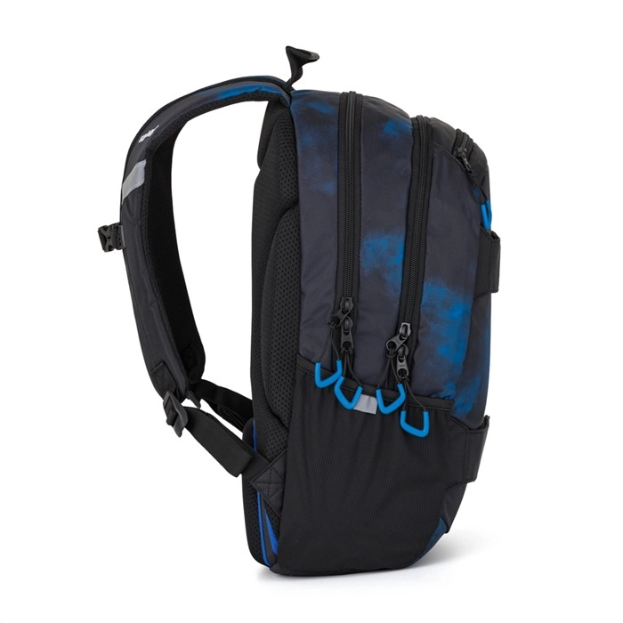 Ο εσωτερικός χώρος είναι έξυπνα σχεδιασμένος: δύο κύριες θήκες χωρούν βιβλία και ντοσιέ, η ενισχυμένη θήκη προστατεύει με ασφάλεια το laptop, η μικρότερη τσέπη και το καραμπίνερ κρατούν τα μικροαντικείμενα σε τάξη. Η πρακτική κρυφή τσέπη στην πλάτη φυλάσσει τα τιμαλφή, ενώ η πλαϊνή τσέπη είναι έτοιμη για μπουκάλι. Τα ανακλαστικά στοιχεία αυξάνουν την ορατότητα στις διαδρομές προς και από το σχολείο.
