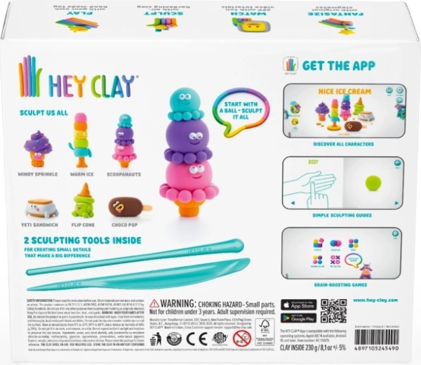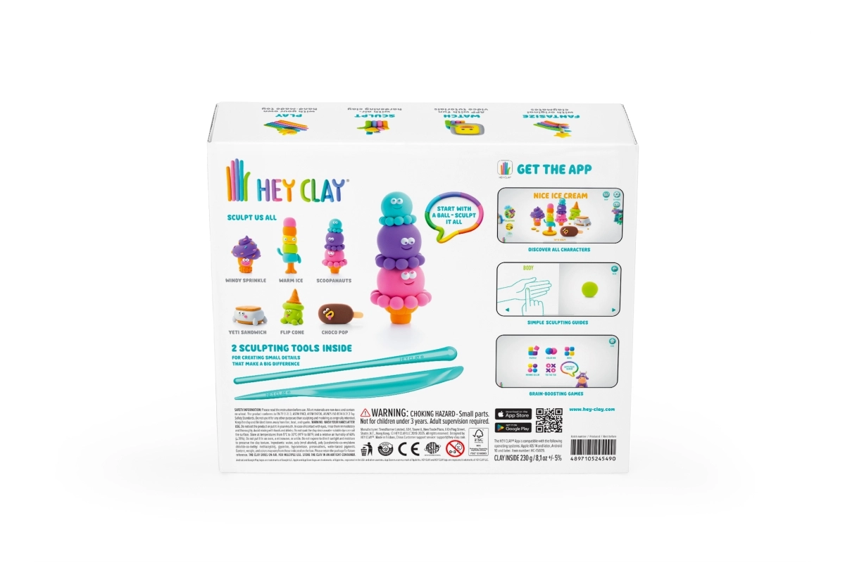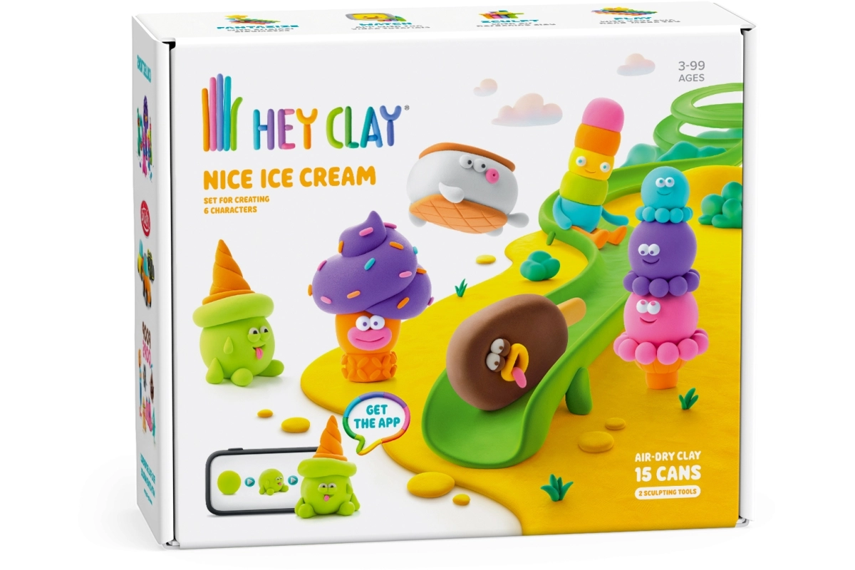 Το σετ Hey Clay Παγωτό φέρνει μια φρέσκια δόση δημιουργικότητας για μικρούς και μεγάλους δημιουργούς. Χάρη στο ελαφρύ, πολύχρωμο και αυτοξηραινόμενο υλικό, τα παιδιά μοντελάρουν εύκολα πρωτότυπες φιγούρες παγωτού, που μετά το στέγνωμα κρατούν το σχήμα τους και μπορούν να χρησιμοποιηθούν ως διακόσμηση ή δώρο.