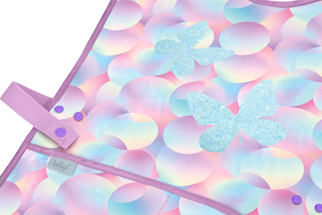 Προσφέρετε στα παιδιά ελευθερία στη δημιουργία χωρίς φόβο για λεκέδες. Η παιδική ποδιά BAAGL Candy με απαλό παστέλ μοτίβο και πεταλούδες είναι ιδανική για εικαστικά, χειροτεχνίες και δημιουργία στο σπίτι. Η ανθεκτική, λεία επιφάνειά της σκουπίζεται εύκολα και στεγνώνει γρήγορα, ώστε να είναι έτοιμη για επόμενη χρήση σε λίγες στιγμές.