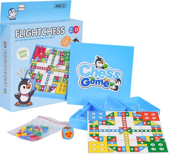 Το χαρούμενο επιτραπέζιο Ludo με σχέδιο πιγκουίνων προσφέρει κλασική διασκέδαση για όλη την οικογένεια. Χάρη στις μικρές διαστάσεις του, το παίρνετε εύκολα στο δρόμο, στο αυτοκίνητο ή στις διακοπές. Οι παίκτες ρίχνουν διαδοχικά το ζάρι, μετακινούν τα πιόνια τους στη διαδρομή και προσπαθούν να φτάσουν πρώτοι όλα τα πιόνια στον στόχο.