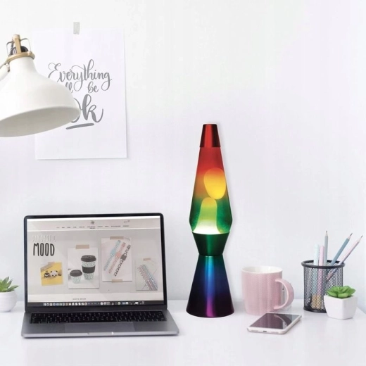 Ανακαλύψτε τη μαγεία της κλασικής λάμπας λάβας σε μοντέρνα, ουράνιο τόξο εμφάνιση. Το ρέον κερί στο ζεστό φως δημιουργεί μια καθησυχαστική κίνηση, ιδανική για χαλάρωση μετά από απαιτητική ημέρα και ως πρωτότυπο αξεσουάρ για το σαλόνι, την κρεβατοκάμαρα ή το γραφείο. Με ύψος 40 cm ξεχωρίζει ως ελκυστική διακόσμηση χωρίς να καταλαμβάνει πολύ χώρο.