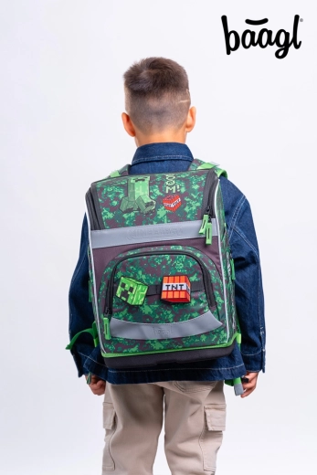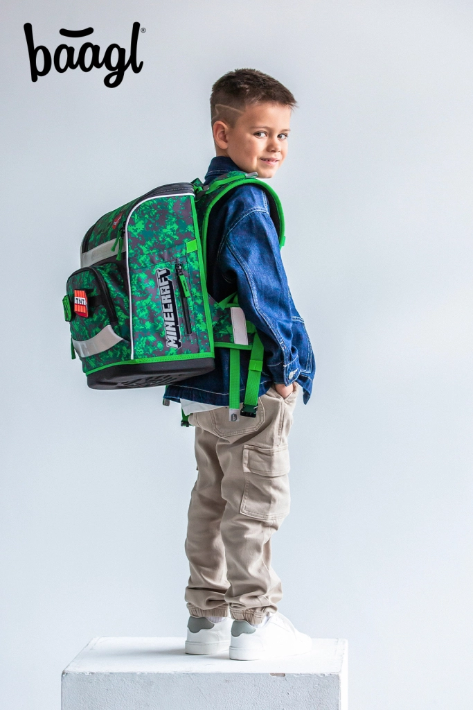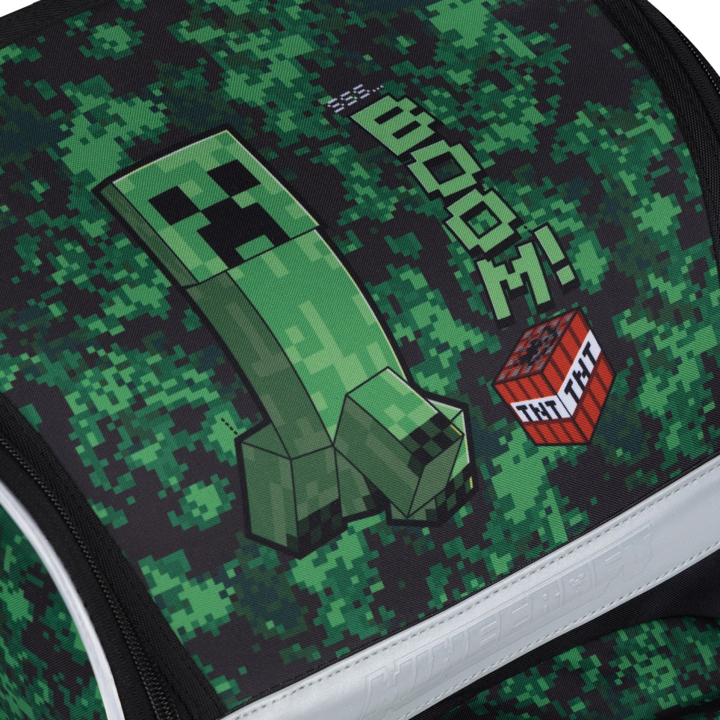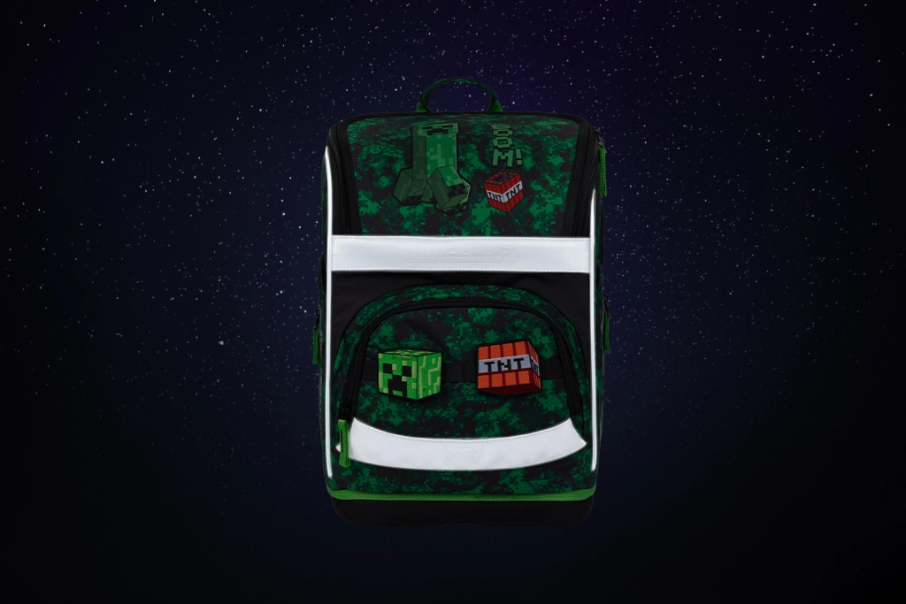 Ολόκληρο το σετ διακοσμείται με gaming μοτίβα MINECRAFT με pixel καμουφλάζ και ανακλαστικά στοιχεία για καλύτερη ορατότητα. Τα φερμουάρ YKK εξασφαλίζουν μεγάλη αντοχή και ομαλό κλείσιμο, ενώ τα ανακυκλωμένα, αδιάβροχα υλικά αντέχουν στις απαιτήσεις της σχολικής καθημερινότητας.
