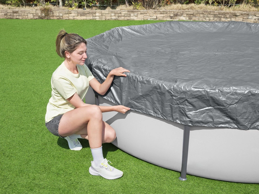 Το πρεμιούμενο κάλυμμα για στρογγυλή πισίνα διαμέτρου 3,05 m της BESTWAY προστατεύει αξιόπιστα το νερό από φύλλα, γρασίδι και ρύπους. Είναι κατασκευασμένο από ενισχυμένο υλικό ανθεκτικό στην υπεριώδη ακτινοβολία με τεχνολογία Polar‑Shield, που εξασφαλίζει ευελιξία ακόμα και σε παγετό έως −25 °C. Πρακτικοί αποστραγγιστικοί οπές αποτρέπουν τη συσσώρευση νερού στην επιφάνεια και το αντιανεμικό σύστημα στερέωσης κρατά το κάλυμμα σταθερά στη θέση του.