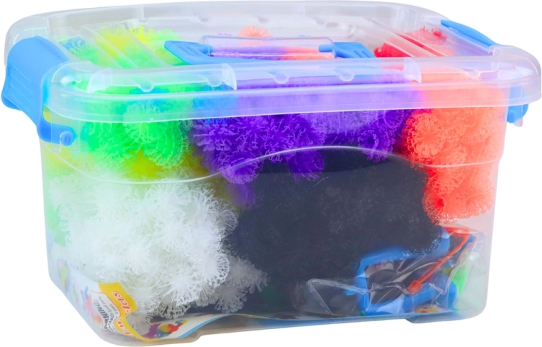 Ανακαλύψτε ατελείωτες δυνατότητες δημιουργίας με αυτό το δημιουργικό σετ κατασκευών από αγκαθωτές μπαλίτσες. Χάρη στο εύκολο κούμπωμα και ξεκούμπωμα, την απαλή ελαστική υφή και την πλούσια παλέτα χρωμάτων, τα παιδιά φτιάχνουν φιγούρες, ζώα, οχήματα και φανταστικά μοντέλα. Περιλαμβάνονται επίσης διακοσμητικά αξεσουάρ (μάτια, μυτούλες, χέρια, καπελάκια) και πρακτικό κουτί με καπάκι για μεταφορά και αποθήκευση. Το παιχνίδι αναπτύσσει τη λεπτή κινητικότητα, τη φαντασία, τη συγκέντρωση και τη λογική σκέψη.