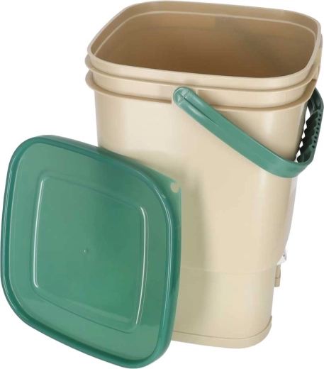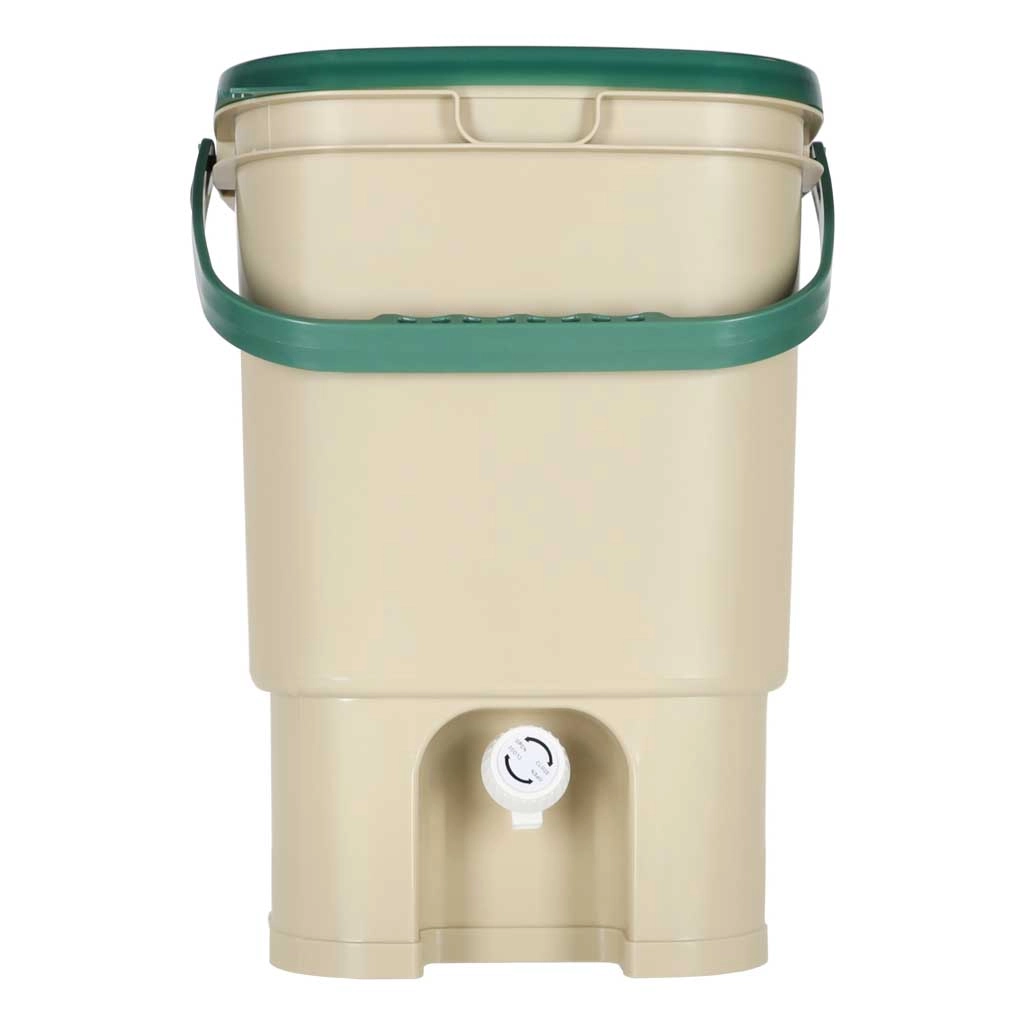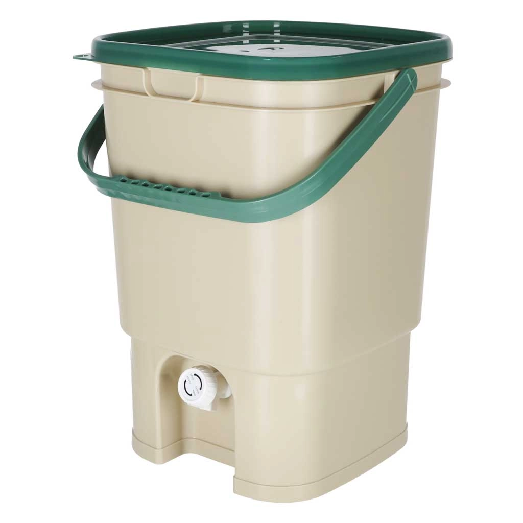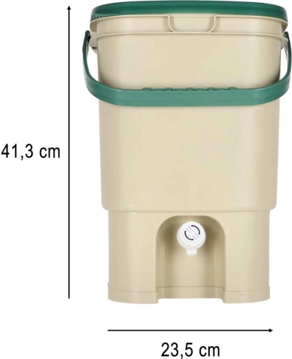 Αξιοποιήστε τα βιοαπόβλητα της κουζίνας σας – αυτός ο πρακτικός οικιακός κομποστοποιητής χωρητικότητας 15 l με κλειστό καπάκι και βρυσάκι μετατρέπει τα υπολείμματα σε φυσικό λίπασμα. Ελαχιστοποιεί τις οσμές, διευκολύνει τον διαχωρισμό των βιοαποβλήτων και, χάρη στην ενσωματωμένη διάτρητη εσωτερική σχάρα και το βρυσάκι, μπορείτε εύκολα να συλλέγετε κομποστοτσάι για το πότισμα των φυτών.