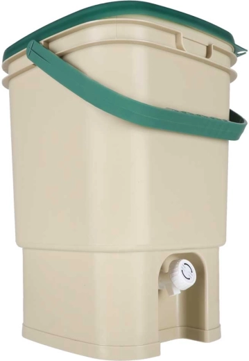Ο πρακτικός κομποστοποιητής για διαμέρισμα ή σπίτι σάς επιτρέπει να συλλέγετε υγειονομικά οργανικά υπολείμματα (φλούδες, κατακάθι καφέ, φακελάκια τσαγιού, τσόφλια αυγών κ.ά.) σε ένα σημείο. Το στιβαρό καπάκι περιορίζει τη διάχυση δυσάρεστων οσμών, η εσωτερική διάτρητη σχάρα διαχωρίζει τα στερεά από τα υγρά και το κάτω βρυσάκι διευκολύνει την αποστράγγιση του πλούσιου σε θρεπτικά συστατικά εκχυλίσματος.