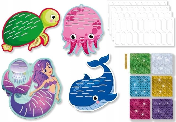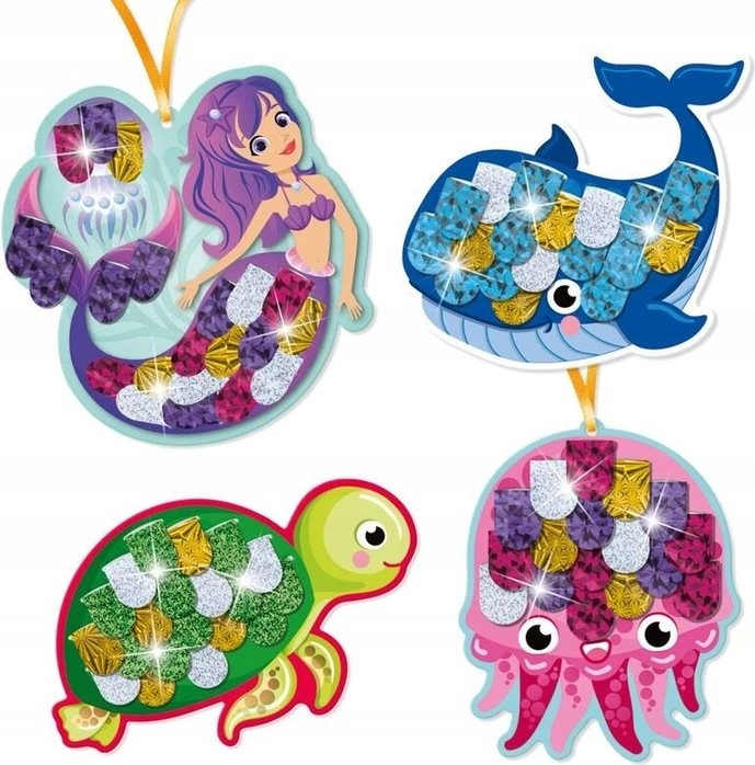 Φτιάξτε μαζί με τα παιδιά σας λαμπερές φιγούρες από τον υποθαλάσσιο κόσμο – από τη φάλαινα μέχρι τη γοργόνα. Χάρη στις μεταλλικές μεμβράνες δημιουργούνται εντυπωσιακές διακοσμήσεις και εικόνες που τα παιδιά μπορούν να εκθέσουν με περηφάνια. Το σετ είναι ιδανικό για απογεύματα γεμάτα δημιουργία και ανάπτυξη δεξιοτήτων.