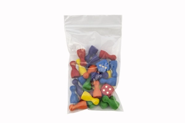 Στη συσκευασία περιλαμβάνονται επίσης δύο στάνταρ ζάρια, ώστε να έχετε ό,τι χρειάζεστε για άμεσο παιχνίδι. Το συμπαγές σακουλάκι με zip διαστάσεων 7×13 cm κρατά πιόνια και ζάρια μαζί και είναι πρακτικό για το ταξίδι.