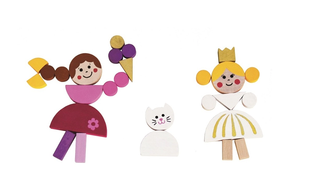 Πολύχρωμα ξύλινα κομμάτια με μαγνήτη συνδυάζονται εύκολα σε φιγούρες, ζωάκια και κάστρα. Τα παιδιά δημιουργούν τα δικά τους παραμύθια και σκηνές ακριβώς όπως τα φαντάζονται.