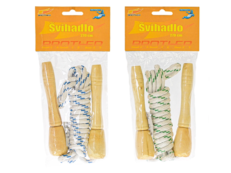 Διασκεδαστικό και ανθεκτικό παιδικό σχοινάκι μήκους 270 cm με άνετες ξύλινες λαβές. Ιδανικό για ενεργή κίνηση, ανάπτυξη συντονισμού και παιχνίδι έξω και στο σπίτι. Εξαιρετική επιλογή για ατομικό σκοινάκι και διασκέδαση με φίλους, διαθέσιμο σε 2 χρωματικές παραλλαγές.