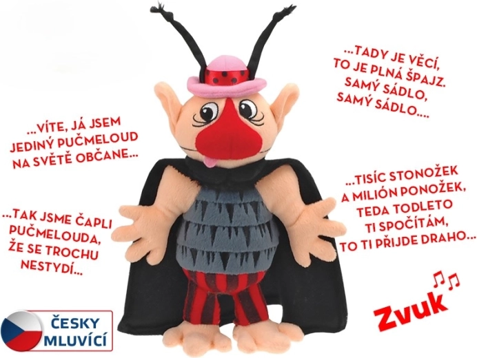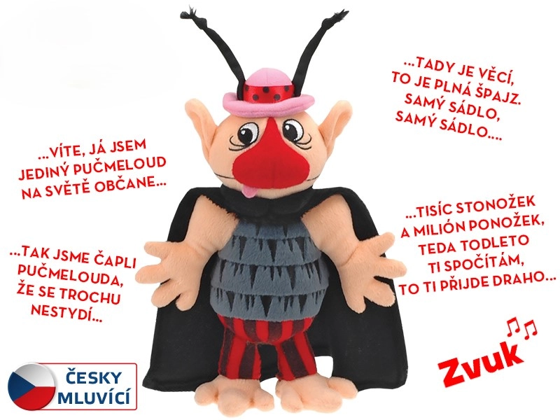 Αξιολάτρευτος λούτρινος Πουτσμελούδ από τις αγαπημένες Ιστορίες των Μελισσοαρκούδων θα χαρίσει χαρά σε μικρούς και μεγάλους θαυμαστές. Με το πάτημα του σημειωμένου σημείου αναπαράγει μερικές γνωστές ατάκες στα τσέχικα. Είναι πολύ μαλακός, ευχάριστος στην αφή και κατάλληλος για παιδιά από τη γέννηση. Μιλάει τσέχικα, 37 cm, απαλό λούτρινο, αγαπημένες ατάκες.
