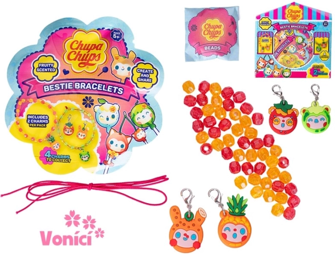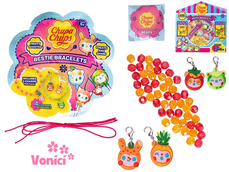 Ανακαλύψτε τα διασκεδαστικά και δημιουργικά αρωματισμένα βραχιόλια φιλίας CHUPA CHUPS για παιδιά από 5 ετών. Στη συσκευασία θα βρείτε 2 ελαφριά πλαστικά βραχιόλια με κρεμαστά, που τα παιδιά μπορούν να συναρμολογήσουν όπως φαντάζονται. Κάθε βραχιόλι μυρίζει ευχάριστα, ώστε να είναι όχι μόνο ένα στυλάτο αξεσουάρ αλλά και μια αισθητηριακή εμπειρία. Ιδανικά για ανάπτυξη δημιουργικότητας και λεπτής κινητικότητας και τέλεια για να τα μοιραστούν με φίλο ή αδέρφι.