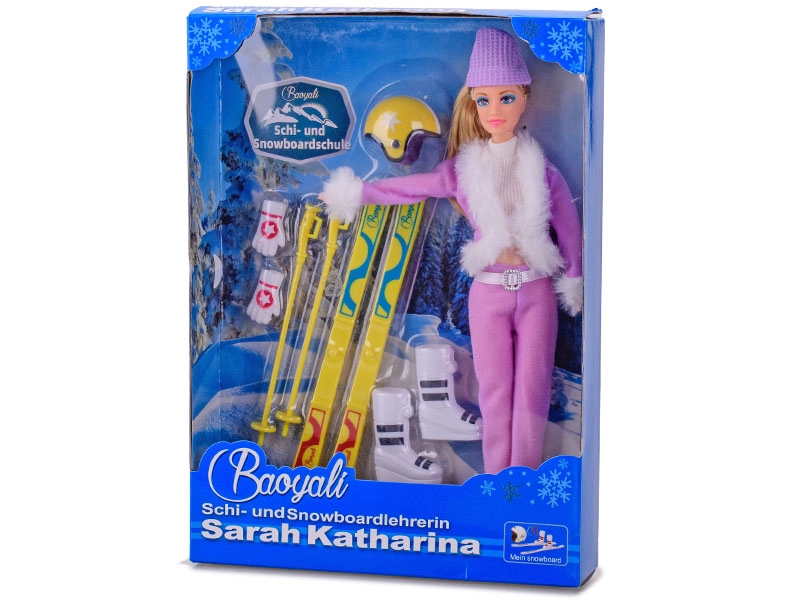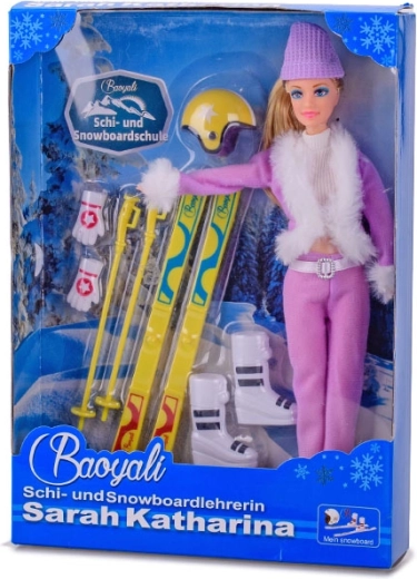 Στη συσκευασία περιλαμβάνονται όλα τα απαραίτητα για περιπέτειες στο σκι: σκι, μπατόν, κράνος σκι, σκούφος, γάντια και μπότες σκι. Η κούκλα διατίθεται σε δύο μοντέρνα χρώματα – ροζ και μωβ. Προειδοποίηση: δεν είναι δυνατή η επιλογή συγκεκριμένης χρωματικής εκδοχής κατά την παραγγελία.