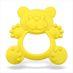 Κίτρινο σιλικονούχο μασητικό με δαχτυλίδι που κρατιέται εύκολα και είναι ιδανικό για απαλό μάσημα και παιχνίδι.