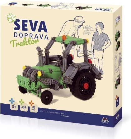Το SEVA Μεταφορές - Τρακτέρ είναι ένα μοναδικό σετ κατασκευής που επιτρέπει στα παιδιά να αναπτύξουν τη δημιουργικότητά τους και τις χειρωνακτικές τους δεξιότητες από νεαρή ηλικία. Το σετ περιλαμβάνει συνολικά 384 κομμάτια, τα οποία μπορούν να συνδυαστούν σε διάφορα μοντέλα τρακτέρ.