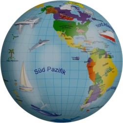 Ελαφριά και διασκεδαστική αθλητική μπάλα για παιδιά με μοτίβο υδρογείου προσφέρει αδιάβροχο υλικό, διάμετρο 23 cm και πολλαπλές χρήσεις στον κήπο, στο γήπεδο και στην πισίνα. Χάρη στη δυνατότητα επαναφούσκωσης διατηρείται σε άριστη κατάσταση για μεγάλο διάστημα.