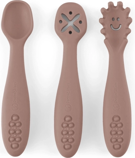 Ανακαλύψτε τη χαρά των πρώτων στερεών με το σετ τριών σιλικονούχων κουταλιών PETITE&MARS TAKE&MATCH στην απόχρωση Velvet Latte. Κάθε κουταλάκι έχει διαφορετικό σκοπό για εύκολη εκμάθηση – σούπας, για ζυμαρικά και για βούτηγμα. Κατασκευασμένα από 100% σιλικόνη κατάλληλη για τρόφιμα, χωρίς BPA, με μαλακές μύτες φιλικές στα ούλα, εργονομικό σχήμα και δυνατότητα πλυσίματος στο πλυντήριο πιάτων. Κατάλληλα από 6 μηνών.